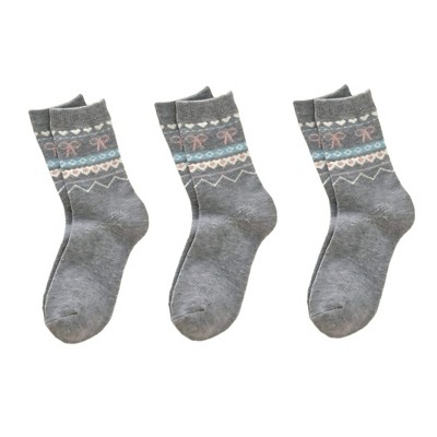 Anna-Kaci Women's 3-Pair Ribbed Knit Crew Socks with Bow and Nordic Pattern Detail - Gray