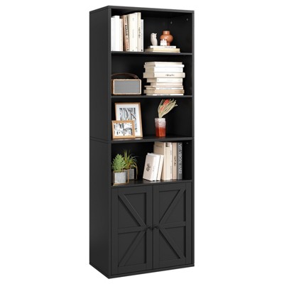 - black bookshelves