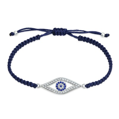 Bling Jewelry Turkish Blue Evil Eye Blue Braided Cord Bracelet CZ Cubic Zirconia Accent .925 Sterling Silver Adjustable
