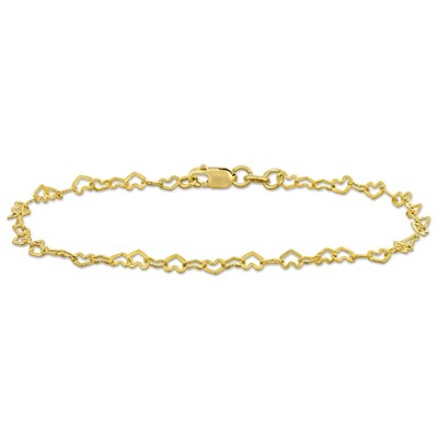 EVERLY JEWELRY | 14K Yellow Gold 2mm Heart Link Bracelet, 7.5 inch