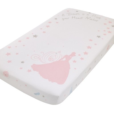 NoJo Disney Princess Enchanting Dreams White and Pink Cinderella A Dream is a Wish Your Heart Makes 100% Cotton Photo Op Nursery Fitted Crib Sheet
