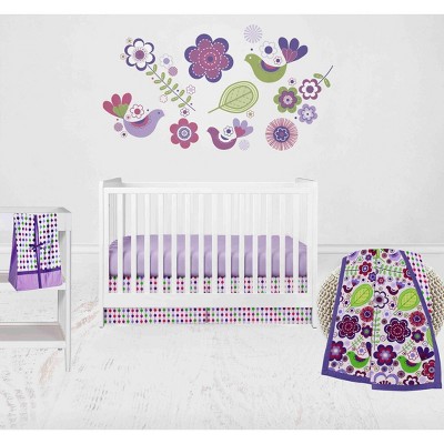 Bacati - Watercolor Floral Purple Gray 6 pc Crib Bedding Set with Long Rail Guard Cover