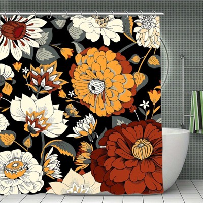 Boho Floral Shower Curtain, Retro Aesthetic Flower Fabric Cloth Shower Curtains, Modern Abstract Bohemia Botanical Shower Curtain 70.8x70.8Inch