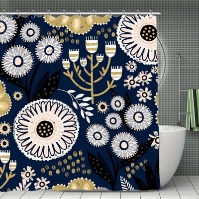 Boho Floral Shower Curtain, Modern Flower Shower Curtains, Chic Elegant Fabric Cloth Shower Curtain, Bohemia Abstract Leaves 70.8x70.8Inch