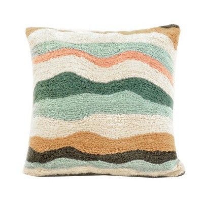 VIP Cotton 18 in. Multicolor Wavy Textured PillowDecorative Boho Throw Pillow for Sofa, Bed & Chair