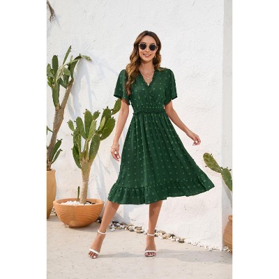 Women Short Sleeve V Neck Midi Summer Dresses 2026 Boho Ruffle Dresses