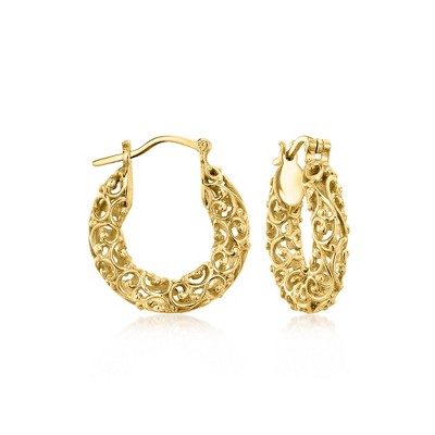 Ross-Simons 18kt Gold Over Sterling Filigree Hoop Earrings