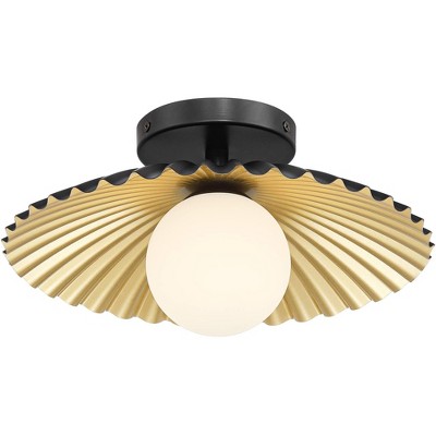 LLHZSY 2-Lights 13 2/5" Flush Mount Drum Glass Ceiling Light Fixture-Gold