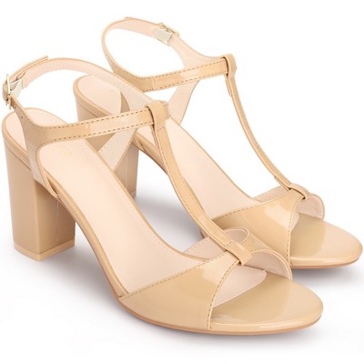 BLISSFUL STEP Open Toe Slingback T-Strap Chunky Heel Sandals for Women