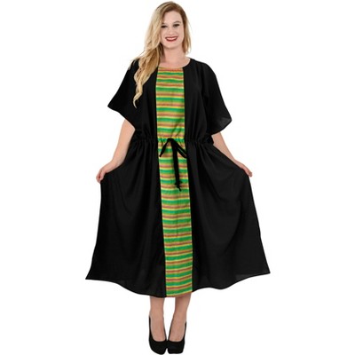 HAPPY BAY Women's House Daily Routine Evening Wear Vacation Casual Dailywear Holiday Loungewear Plus Size Caftan Maxi Boho Nightwear 2X-3X Black,