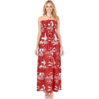LA LEELA Womens Tube Dress Long Flowy Boho One Size Coral Island
