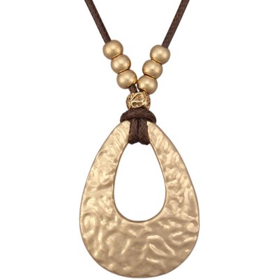 SmallRig Leather and Wood Necklace Chunky Circle Pendant Boho Jewelry for Women