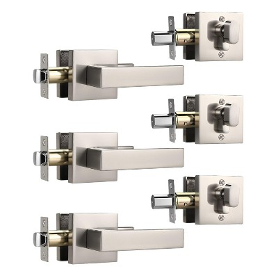 Itopfox 3 Pack Square Door Knob with Deadbolt, Brushed Nickel Heavy Duty Single Keyed Deadbolt Lockset with Passage Lever (Keyed Alike)