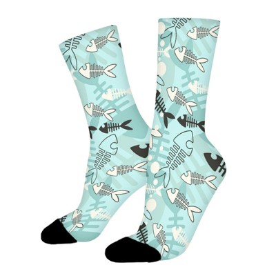 Skeleton Fish Women Printed Crew Socks Funny Funky Socks Soft Polyester Novelty Gifts for Artists Men