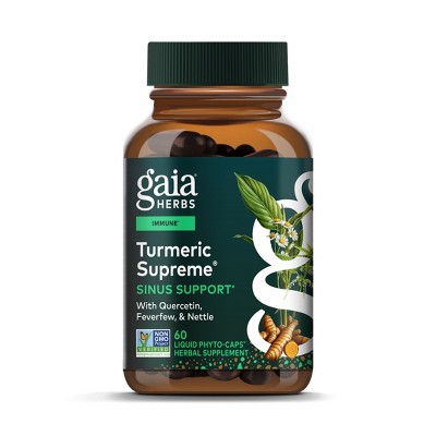Gaia Herbs Turmeric Supreme Sinus Support - Helps Provide Sinus Relief & Healthy Response* -60 Vegan Liquid Phyto-Caps (20 Servings)