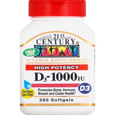 21st Century Vitamin D3 Softgels High-Potency D3 for Bone Strength, Immune Support & Calcium Absorption 250 Count