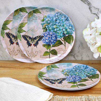The Lakeside Collection Hydrangea & Butterfly Salad Plates - Set of 4 -