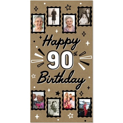 Big Dot of Happiness 90th Birthday Kraft Photo Banner, Happy 90th Birthday Brown Paper Photo Display for 4x6 Pictures, Milestone Decor – 1 Ct