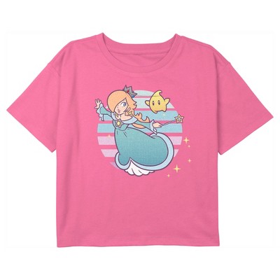 Girl's Nintendo Super Mario Rosalina And Luma Striped Background Portrait T-Shirt