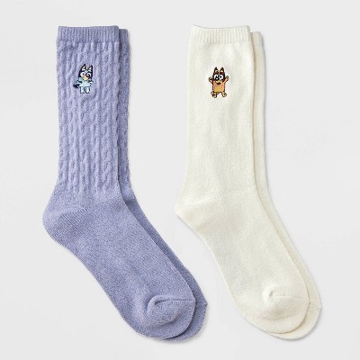 Women's Bluey Super Soft Embroidered 2pk Crew Socks - Purple/Ivory 4-10