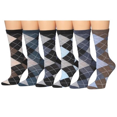 Tipi Toe Women's 6 Pack Colorful Elegant Argyle Patterned Lightweight Crew Socks