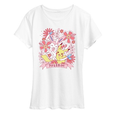 Women's - Pokémon - Valentine Florals Pikachu Sylveon Short Sleeve Graphic T-Shirt