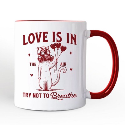 Love Is In The Air Try Not To Breathe Cat Mug, Funny Anti-Valentine Gift | OrnamentallyYou