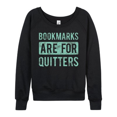 Women's - Instant Message - Bookmarks are for Quitters Lightweight French Terry Wide Neck Long Sleeve Graphic Shirt