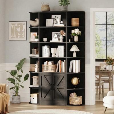 - farmhouse bookshelf with doors