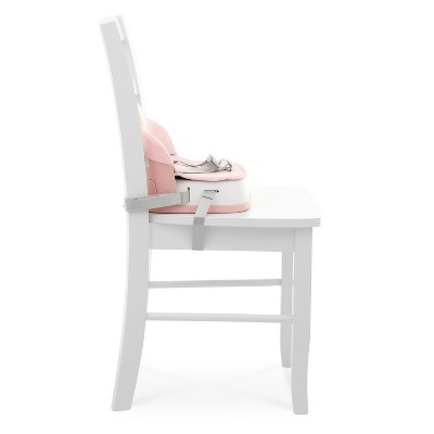 Dream On Me Cozy Pod Booster Seat in Gray with removable cover, 3-point safety harness, foldable design, and easy to carry.