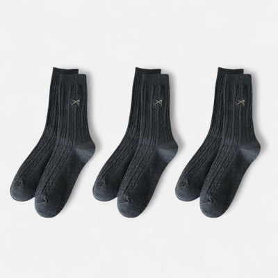 Anna-Kaci Women's 3-Pack Ribbed Crew Socks with Subtle Flecked Texture and Mini Embroidered Bow Accent - Gray