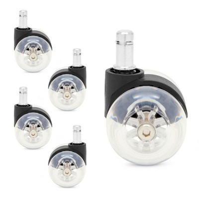 Built Industrial Set of 5 Universal 7/16 Stem Clear Office Chair Caster Wheels Replacement Parts, Clear