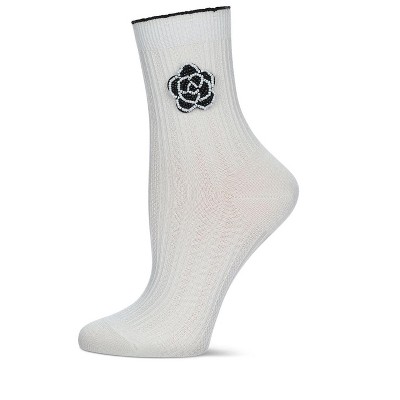 Memoi Women's Beaded Blossom Knit Rib Crew Socks