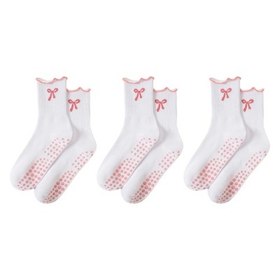 Anna-Kaci 3-Pair Women's Soft Knit Crew Socks with Allover Bow Pattern Stretch Fabric Cozy Comfort Set