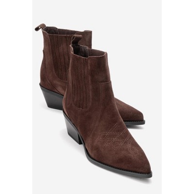 Journee Signature Women's Genuine Leather Airly Almond Toe Stacked Ankle Booties