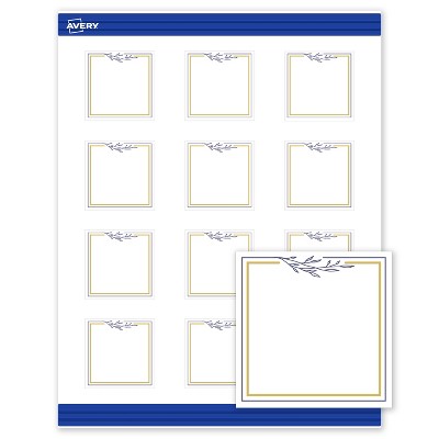 Avery Printable Square Cards, Gold Multi-Lined Border, 2.5" x 2.5", Matte White Square Cards, Laser/Inkjet, 90ct, Great for Business Cards
