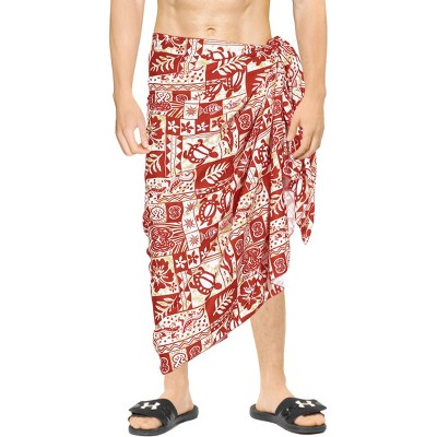 LA LEELA Men's Beach Summer Long Cover Up Vacation Lava Lava Sarong Hawaiian Beachwear Sarongs Samoan Swimwear for Men One Size Red, Turtle