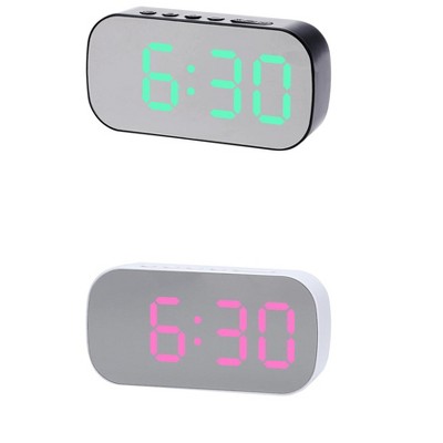 REGALWOVEN Plastic Digital Adjustable Corded Electric Alarm Clock 6.3 x 2.4 x 1 Inches White Mirror