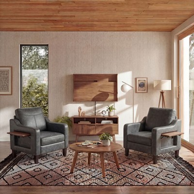 TYBOATLE Mid-Century Faux Leather Accent Chair with Hidden Storage, Tufted Armchair with Side Pockets & Lumbar Pillow for Living Room Office