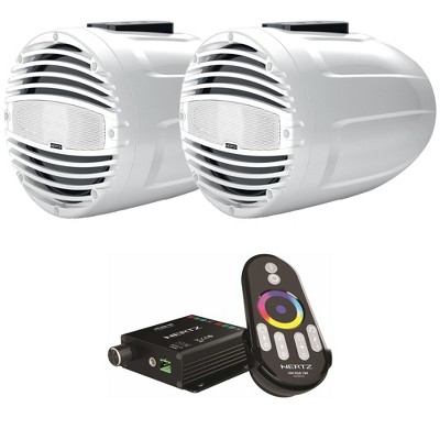 Hertz HTX 8 M-FL-TW 8" White Marine Wake Tower Flat Mount Speaker Pair with LED Controller