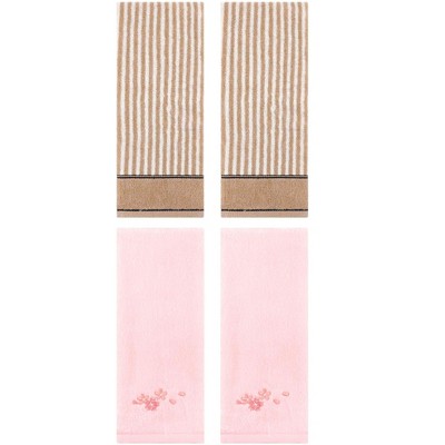 REGALWOVEN 4 Pcs Floral Pattern Cotton Bathroom Hand Towel