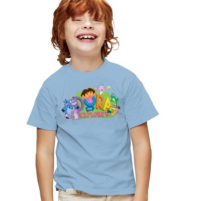 Boys' Dora The Explorer Classic Logo With Boots And Swiper T Shirt Light Blue