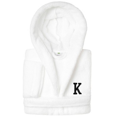 Personalized Linum Kids 100% Polyester SUPER PLUSH Double Brushed Hooded Bathrobe in White Bookman Font