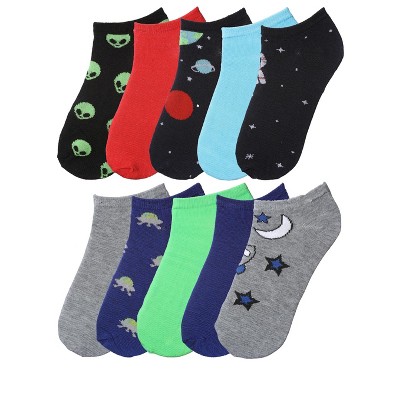 Kids Boys Astronaut Low Cut Socks - 10 Pairs