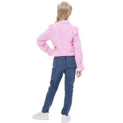 Clearlove Girl's Long Sleeve Plaid Button-Down Shirt with Tie Front & Ruffle Sleeve Detail Classic Collar Top