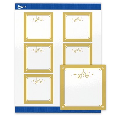 Avery Labels, 3" x 3", Gold-Metallic Ornaments, Glossy, 60ct