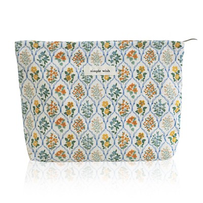 Narwey Cute Floral Cotton Makeup Brush Cosmetic Bag for Women, Travel Quilted Zipper Make Up Bag