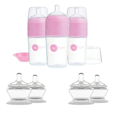 PopYum Pink 7 Piece Bundle: 9oz Bottle 3-Pack + 2 Nipple 2-Packs