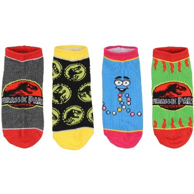 Jurassic Park Socks Kids T-Rex Dinosaur World Ankle No Show Socks - 4 Pack