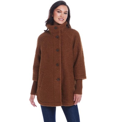 Weatherproof Women's Button Front Boucle Topper with Knit Sleeves